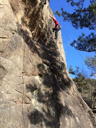 妙号岩でクライミング。前ノ壁を登る。